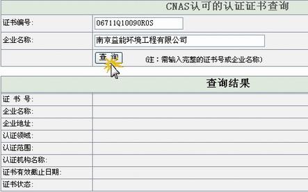 4、將完整的“證書編號”或“企業名稱”輸入信息欄,點擊“查詢”;
