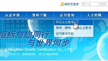 二、證書查詢方法 (一)通過恒標網站查詢 1、登陸m.fzdscy.cn,進入北京恒標質量認證有限公司網站首頁;